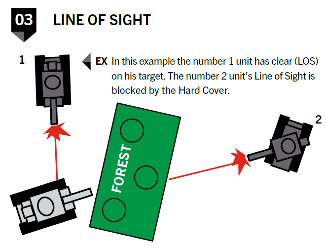 The Active Player declares one shot for each tank that has a Line of Sight on a target. Multiple units may shoot at the same enemy. Once the Declaration Phase is done, no other declarations may be changed or made.